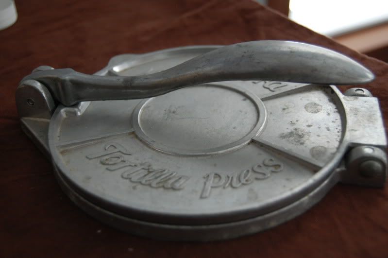 We were visiting with my parents yesterday and they have a tortilla press that they don't use - so I took it off their hands. I'm so excited because when I have to roll out my homemade tortillas with a rolling pin it takes a pretty long time.