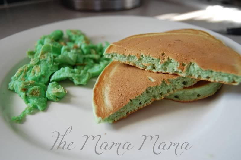We typically have “Pancake Saturday” and so I made our pancakes green... and then I turned our eggs green too :)